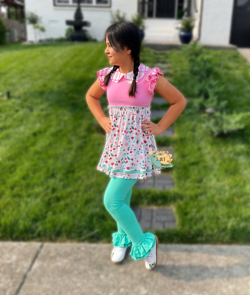 Add a fun, whimsical touch to your spring and summer wardrobe with our Brynn_Strawberry Fields tunic! Featuring a cute floral strawberry print and flutter sleeves, this tunic is the perfect blend of fun and fashion.