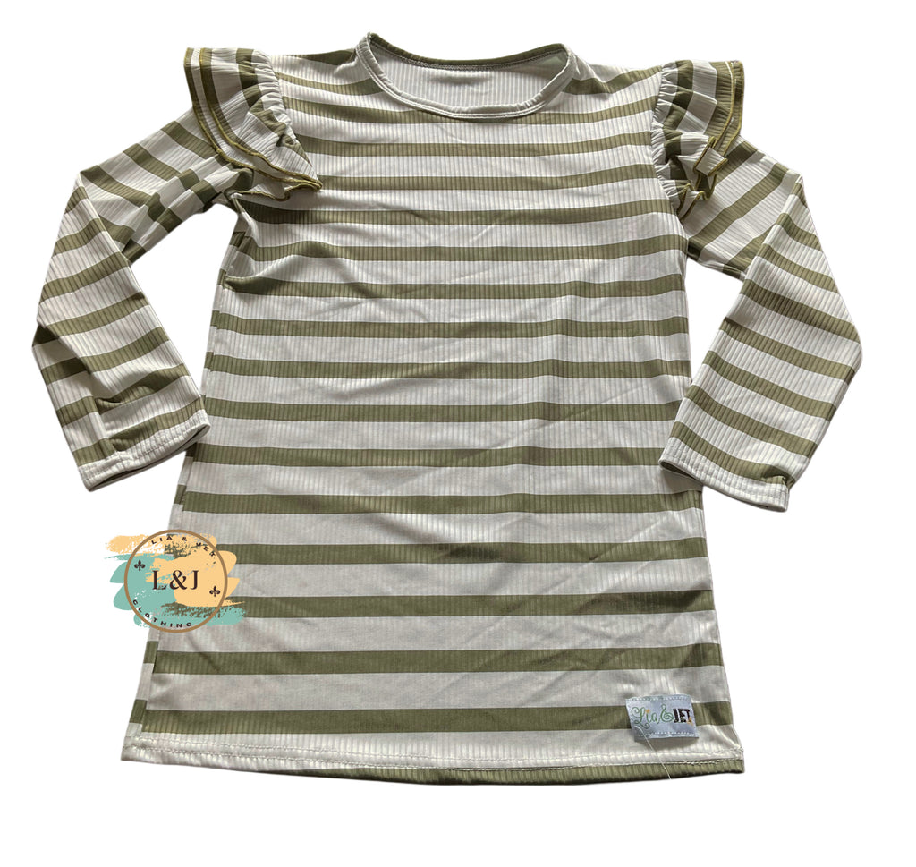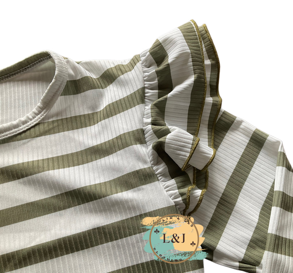 Item description: ribbed long sleeve top with flutter details