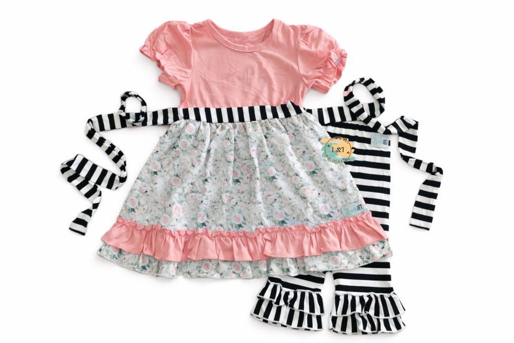 Be a head-turner in Rosie_'s Blushing Blooms! This cute girls outfit is not only featuring a gorgeous rose print and blush tones, but also absolute fashion perfection. Put a pep in her step with this undeniably adorable look!